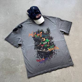 Vendita calda estate 250gsm 100% cotone acido Wash stampato Retro taglio ampio Casual da uomo t-shirt